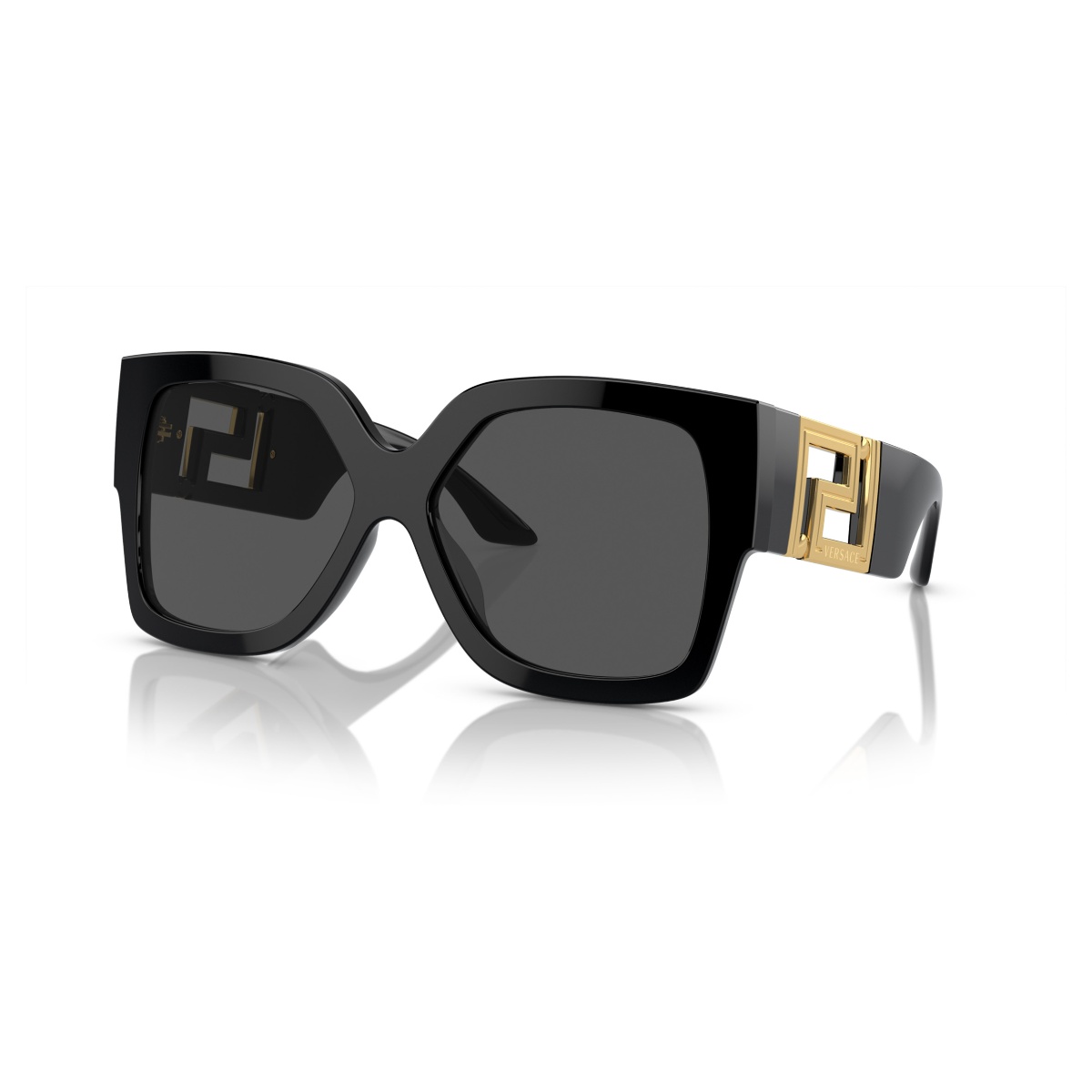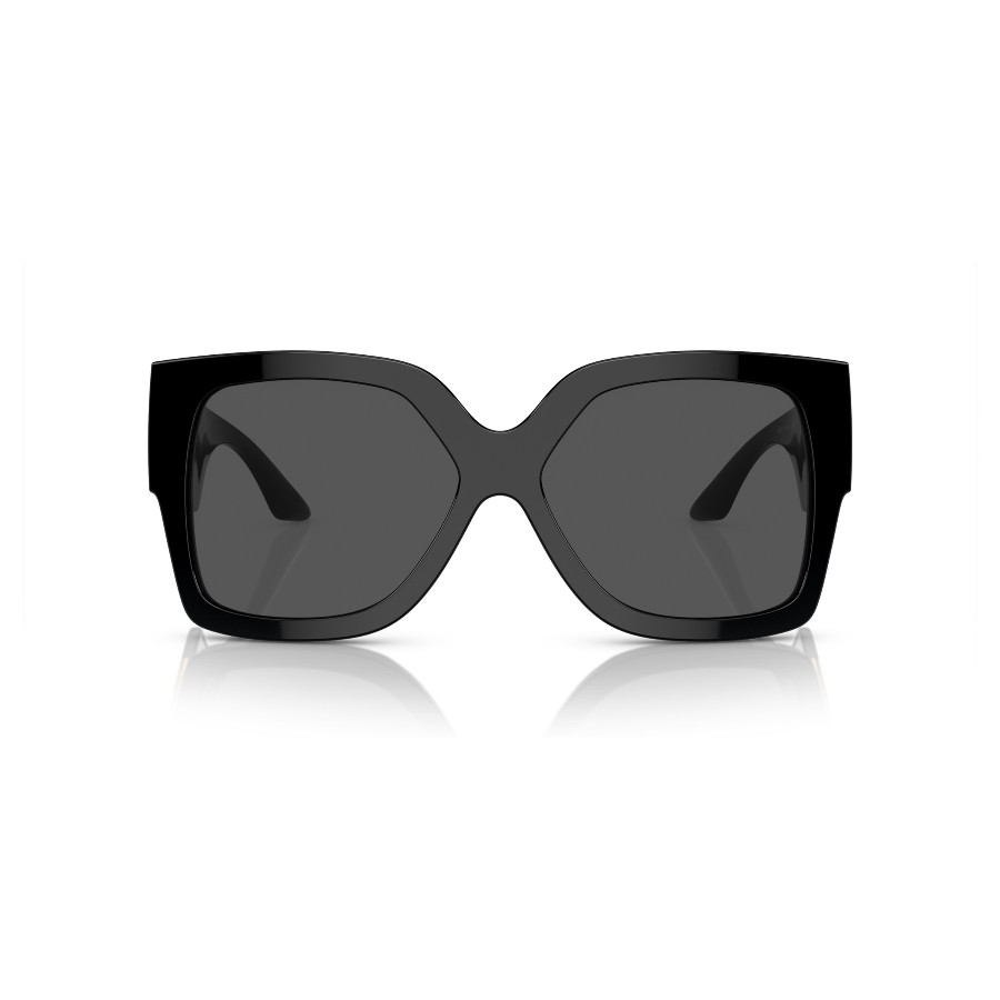 Die Versace VE4402 - GB1/87 ist eine luxuriöse Sonnenbrille aus der Greca-Kollektion von Versace. Diese Sonnenbrille ist aus Acetat gefertigt und in Schwarz gehalten. Die rechteckige Form bietet einen markanten Look, ideal für Damen. Die Gläser sind dunkelgrau und bieten Schutz der Kategorie UV-Filter 3, was ideal für intensive Sonneneinstrahlung ist.