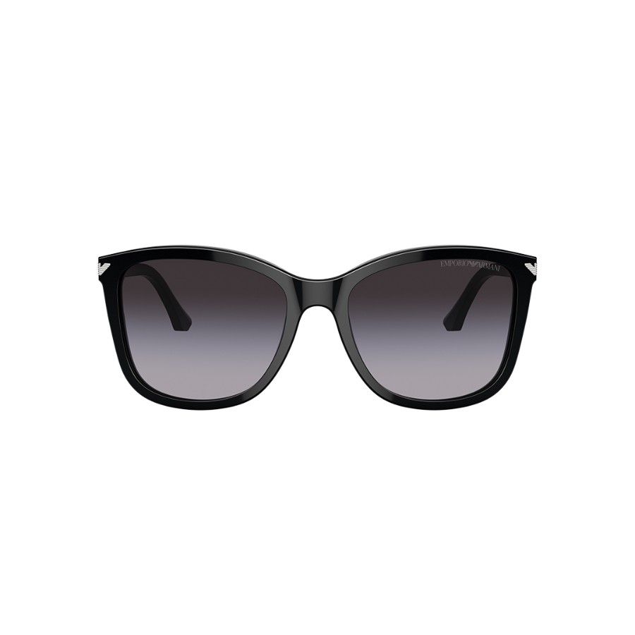 Die Emporio Armani EA4060 50178G ist eine elegante Damen-Sonnenbrille mit moderner Quadrat-Form. Die Fassung besteht aus glänzendem schwarzen Acetat und wirkt hochwertig verarbeitet. Die Gläser sind als Gradient-Grau-Linsen ausgeführt (verlaufender Grauton), bieten modern ausbalanciertes Lichtverhalten.