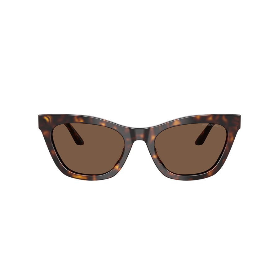 Die Emporio Armani EA4259U 502673 ist eine stilvolle Damen-Sonnenbrille in edler Cat-Eye-Form. Der glänzende Havana-Rahmen aus hochwertigem Acetat verleiht ihr einen eleganten, femininen Look, während die braunen Gläser angenehmen Sehkomfort und zuverlässigen UV-Schutz bieten. Das dezente Emporio Armani Logo an den Bügeln unterstreicht die exklusive Handschrift der Marke – perfekt für alle, die zeitlose Eleganz und modische Raffinesse schätzen.