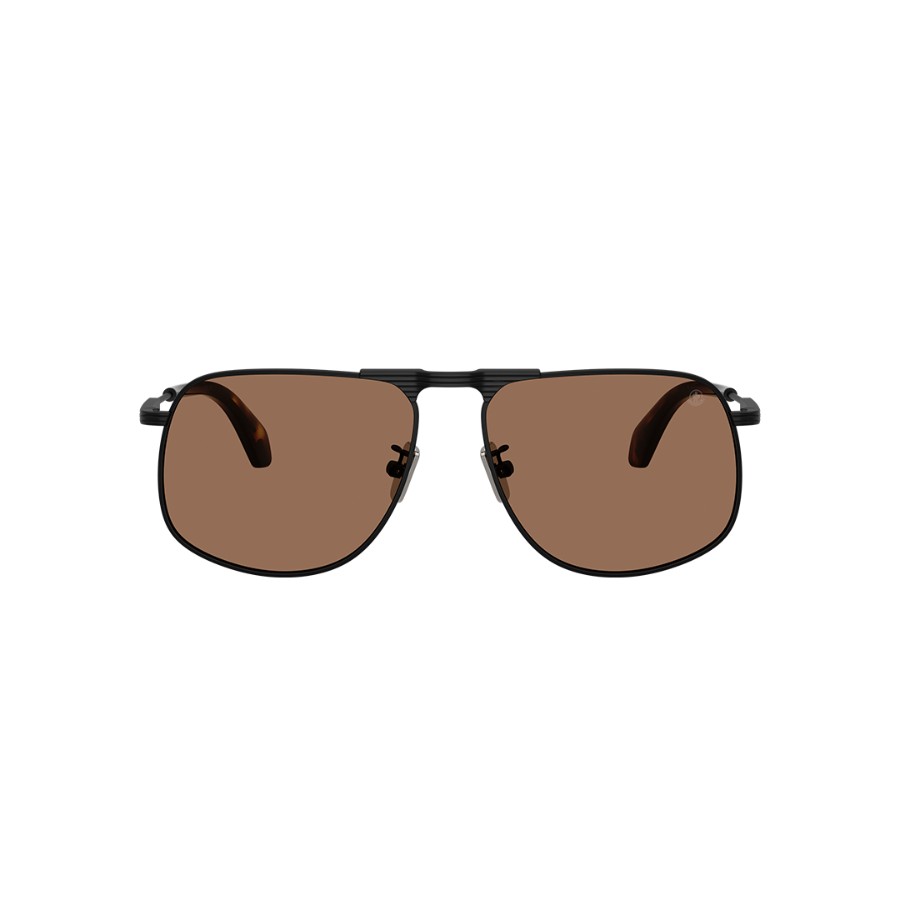 Der filigrane Metallrahmen in mattem Schwarz verleiht ihr eine moderne, elegante Ausstrahlung, während die braunen Gläser einen warmen, stilvollen Kontrast bilden.